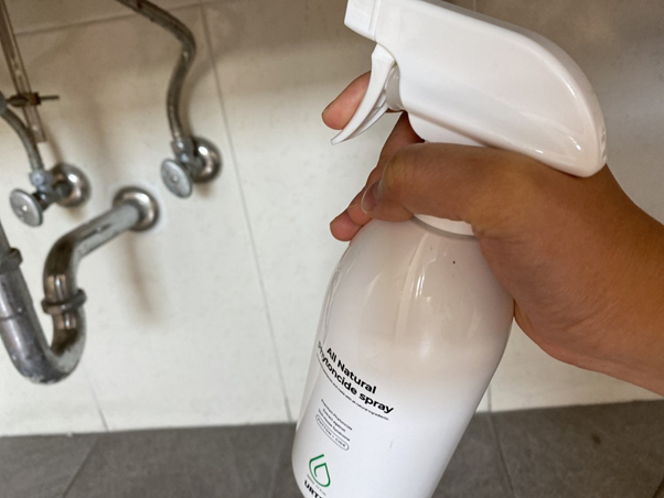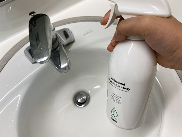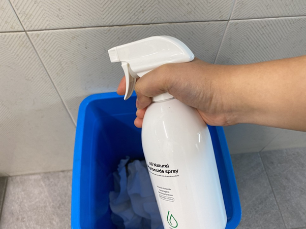 스프레이를 뿌리고있어요.